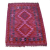 For inquiries, contact us at info@allrugo.com or message us on Instagram @allrugo.Age New Weave Hand Knotted Kilim ID B29208 Color Purple Condition Perfect Design Overdyed Vegetable Kilim KPSI Flat-weave Material 100% Wool Origin Pakistan Pattern Geometric Shape Rectangle Size(cm) 61 x 84 cm Size(ft) 1' 10" x 2' 9" ft Standard Size 2' x 3' ft Style Pakistani & Kilims Thickness Approx 0.16 inch / 4 mm Known As Overdyed Chobi Kilim, Overdyed Qilim, Overdyed Kelim -